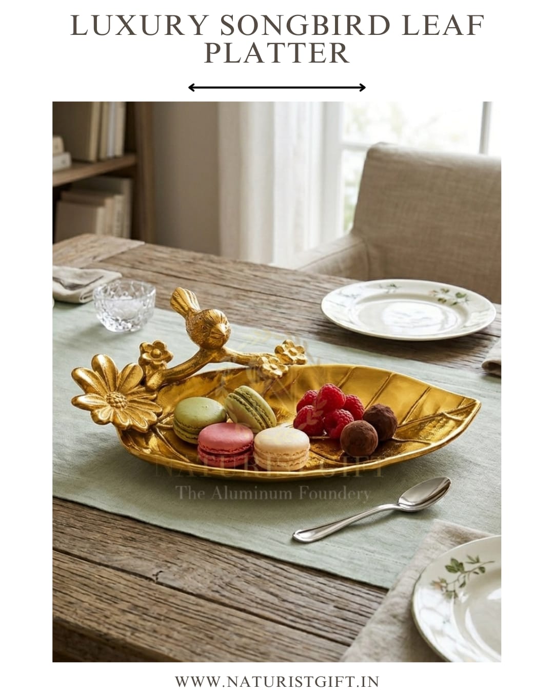 Elevate your table with the Naturist Gift™ Golden Songbird Leaf Platter—a handcrafted masterpiece in mirror-gold finish that blends organic nature with modern luxury. Perfect as a sophisticated centerpiece or premium server, it brings artisan-quality elegance to every occasion.