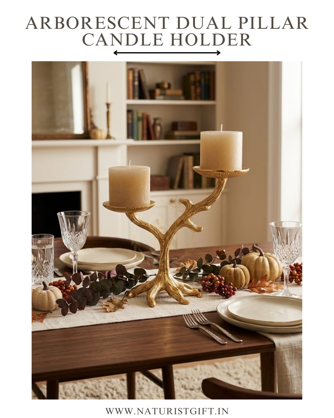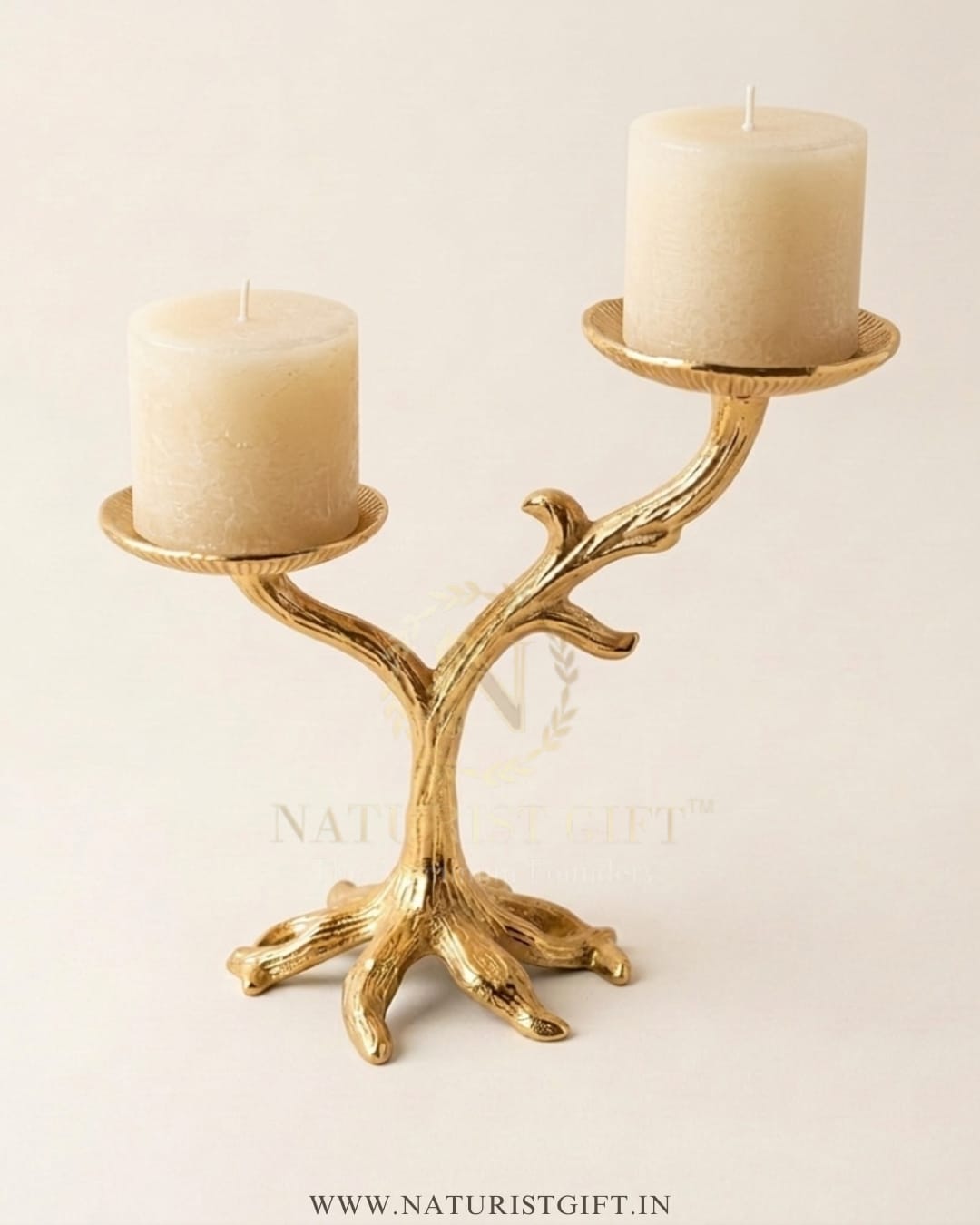 Add a touch of organic elegance to your decor with this gold-plated double pillar candle holder from Naturist Gift™. Its unique tree-branch design brings a sophisticated, nature-inspired luxury to any setting.