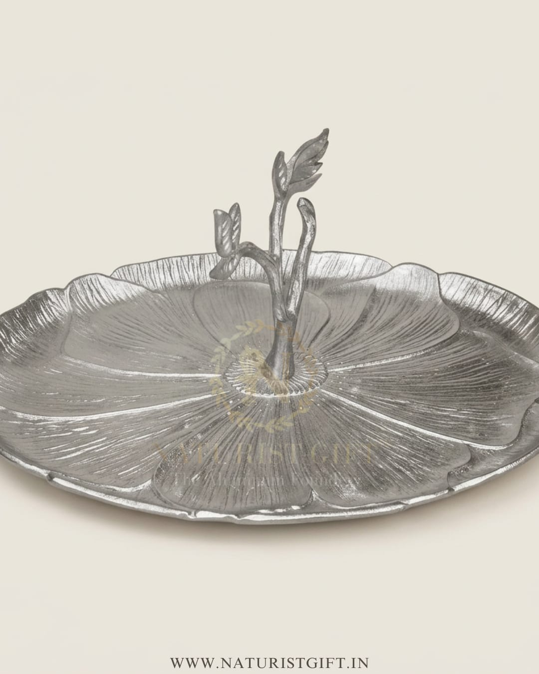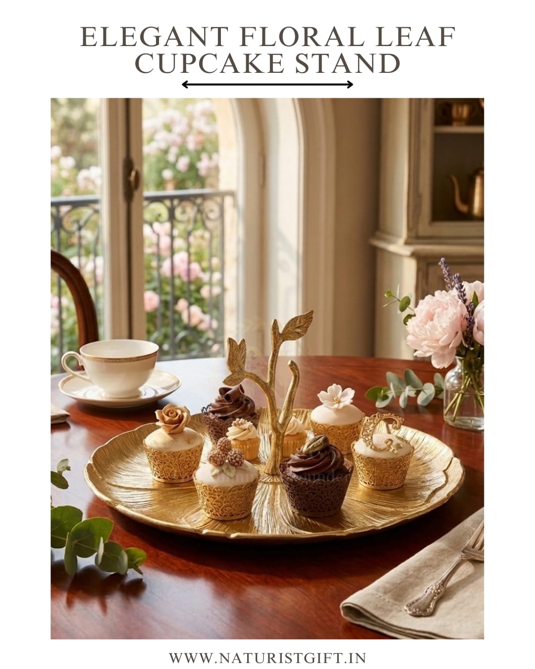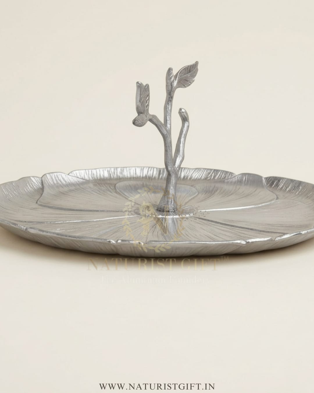 Elevate your dessert presentation with this stunning Naturist Gift™ cupcake stand. Handcrafted with a meticulous leaf-textured design and a graceful branch handle, this raw aluminum masterpiece brings a touch of organic luxury to any tea party or celebration.