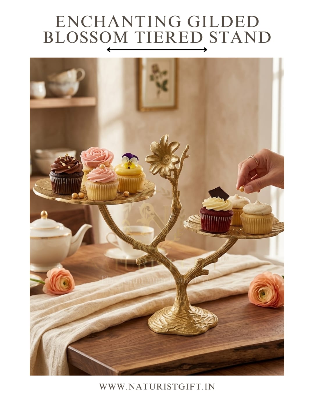 Elevate your dessert display to a work of art with our Gilded Blossom Tiered Stand. This captivating piece, from Naturist Gift™, features an intricate, tree-like structure finished in brilliant gold, with each tier resembling a beautifully textured blooming flower. Perfect for showcasing delectable cupcakes, pastries, or delicate treats, it transforms any table into a scene of natural beauty and sophistication. Let this exquisite stand from Naturist Gift™ be the centerpiece of your most cherished gatherings, reflecting the grace and wonder of the natural world.