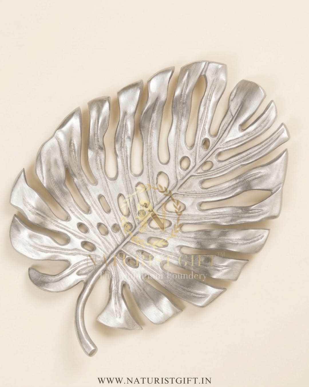 Exclusively curated by Naturist Gift™, this exquisite Monstera leaf platter represents the pinnacle of artisanal craftsmanship and high-end home decor. Meticulously crafted from premium raw aluminum, the piece showcases a stunning metallic texture and a natural silver-toned finish that brings a touch of luxury to any modern setting. Whether used as a sophisticated centerpiece or a functional decorative tray, this Naturist Gift™ signature product is designed to elevate interior aesthetics with its timeless botanical elegance and professional studio-quality shine.